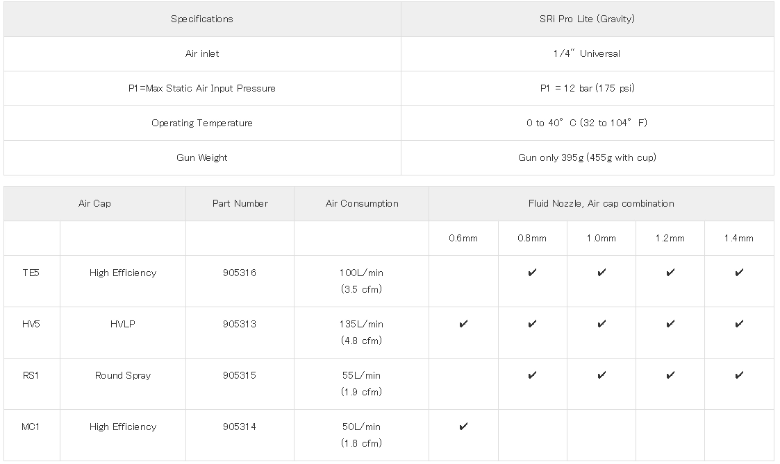 비스 개발팀은 새롭게 Pro Lite-S용으로 유체역학의 최첨단 기술을 구사한 4종류의 고성능 에어 캡을 개발, 이로써 메탈릭・펄 베이스 코트로부터 최신의 고밀도 클리어 도료 까지 최고의 미세화를 제공합니다.