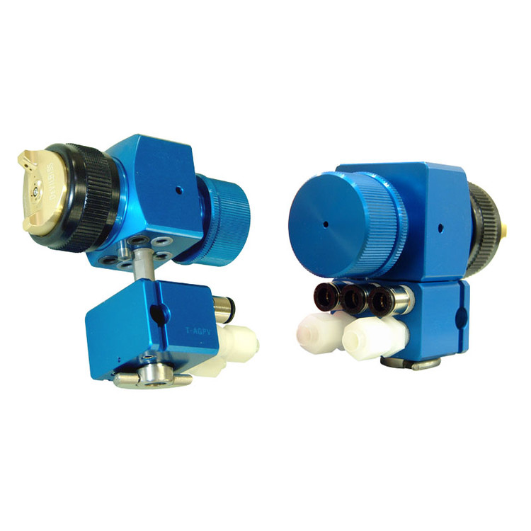 저용량 중압 건은 기존 건이나 HVLP 건보다 공기 소비량이 훨씬 적으면서도 미세 분무 및 높은 이송 효율을 제공하도록 설계되었습니다. 또한, T-AGPV는 독창적으로 설계된 분리형 건입니다. 호스와 튜브는 건에 직접 연결되는 것이 아니라 장착판에 연결되어 있어 핸들을 180도 돌리기만 하면 건을 쉽게 탈부착할 수 있습니다. 이 새로운 설계는 분리 과정을 크게 간소화하여 교체 및/또는 유지보수를 위한 라인 중단 시간을 크게 단축합니다.