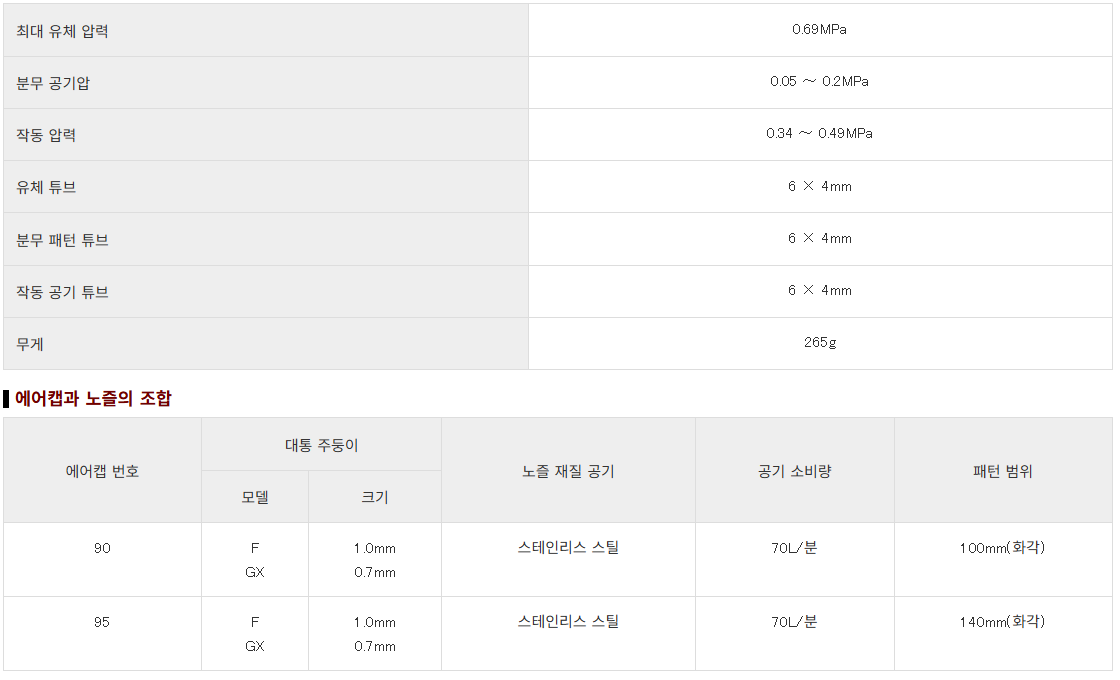 - 건 헤드 내부 유체 순환도 가능합니다.